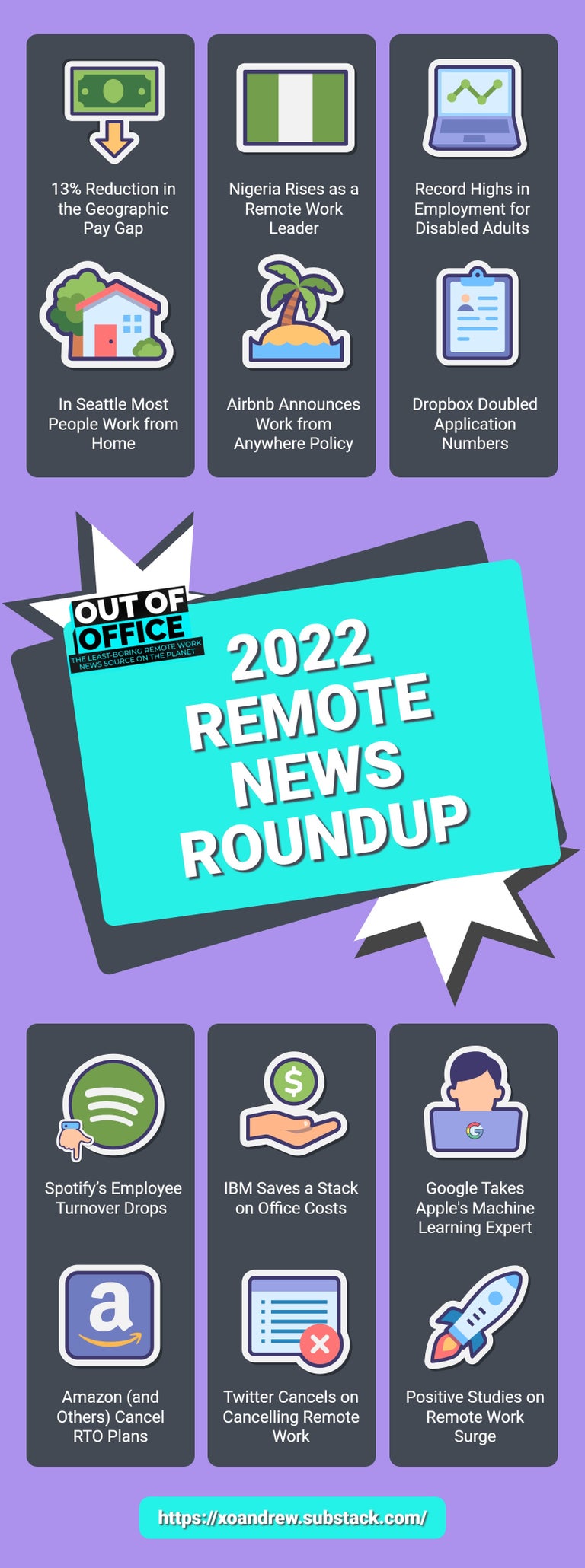 - WTF happens to remote work now? Get the biggest and best remote news stories of 2022 recapped by Andrew on this weekโs Out of Office. Then find out which trends and developments on the future of work are coming. Read it here.